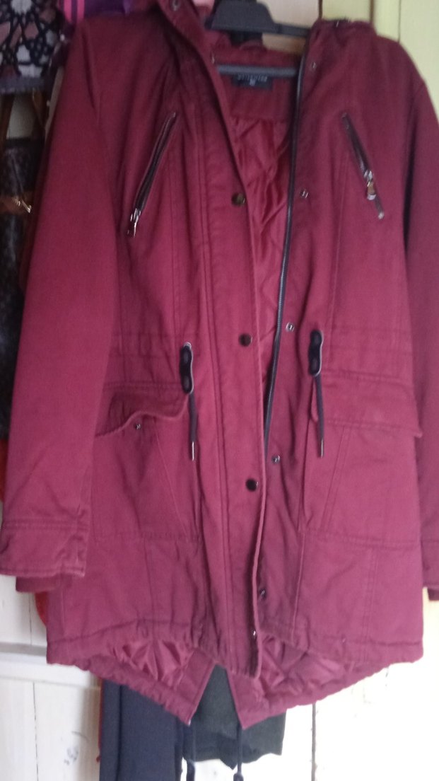 Bordo renkli, fermuarlı ceplere sahip kadın ceketi. Geniş kesim, uzun kollu ve yumuşak fleece kumaştan, rahat günlük kullanım için uygundur.