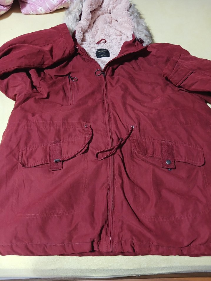 Bordo renk, fermuarlı, uzun kollu, notched lapel yakalı, bol kesim midi mont. Yumuşak ve sıcak kumaş, dış mekan kullanımı için uygun. Parlak renkli ve rahat sokak stili için ideal. ❄️