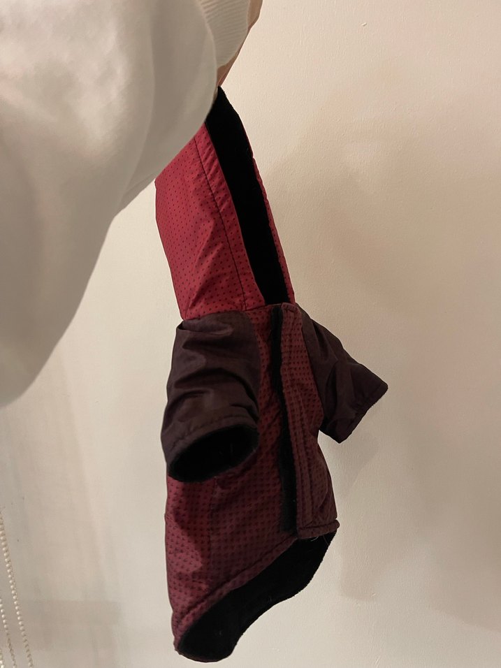 Bordo renkli, fermuarlı ve sade desenli sokak stili köpek kıyafeti. Rahat ve kullanışlı tasarıma sahiptir.