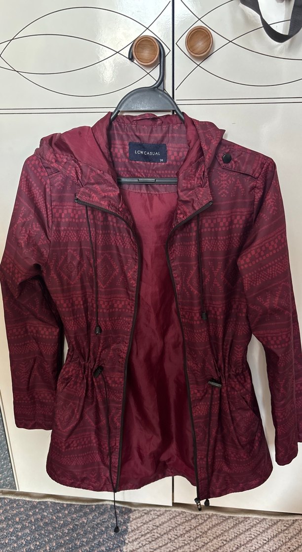 Bordo renkli, fermuarlı ve uzun kollu bu kadın ceketi, notched lapel yakaya ve dar kesime sahiptir. Sentetik kumaştan yapılmış, günlük sokak stiline uygundur. LCWCASUAL markalı yağmurluk