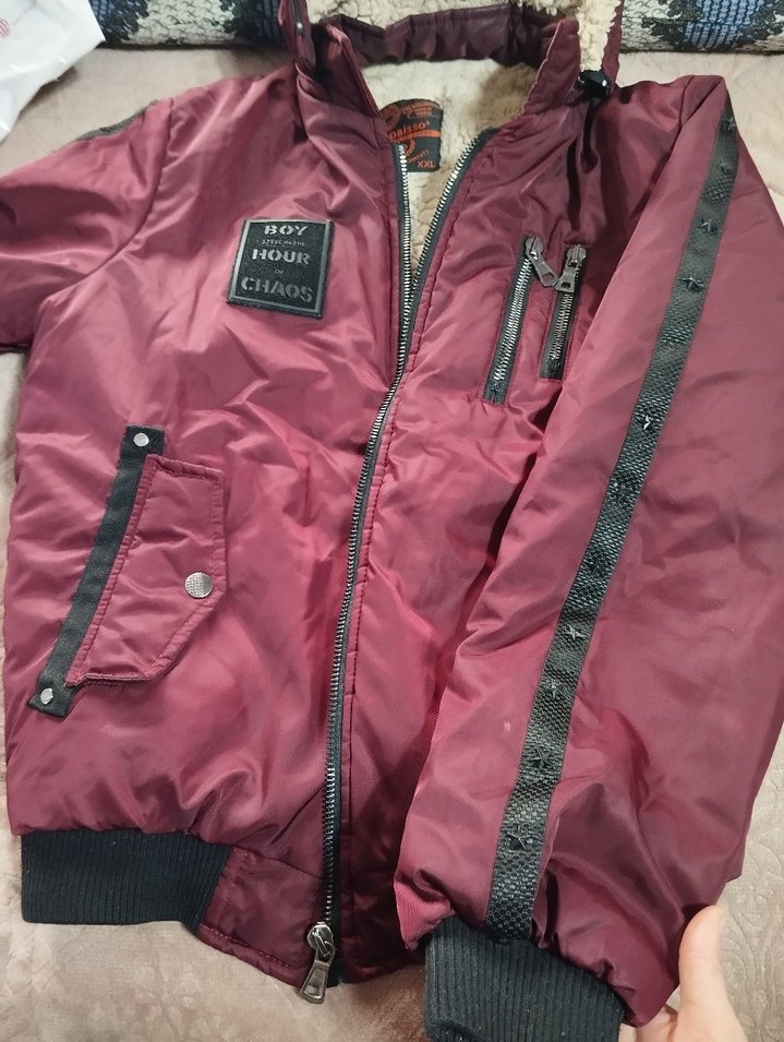 Bordo Fermuarlı Street Wear erkek mont dar klıp l XL bedene olur