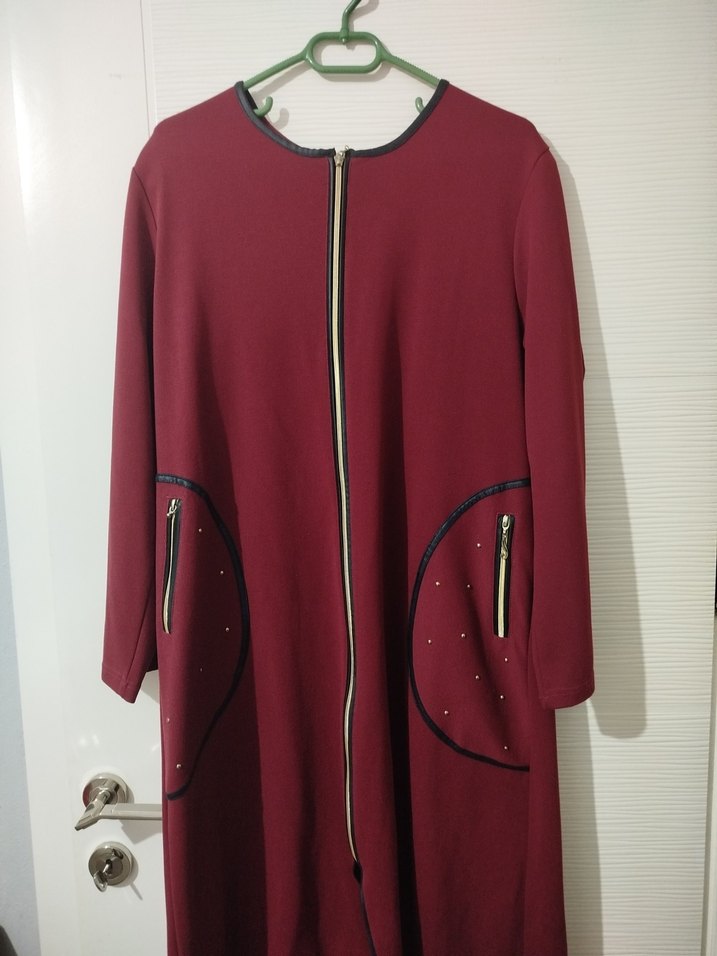 Bordo Fermuarlı Uzun Kadın baharlık ferace
