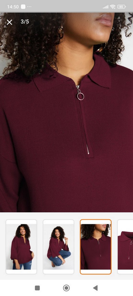 Bordo yaka fermuarlı, uzun kollu, normal midi boyda yün triko. Minimalist ve şık günlük stil için uygun. ✨