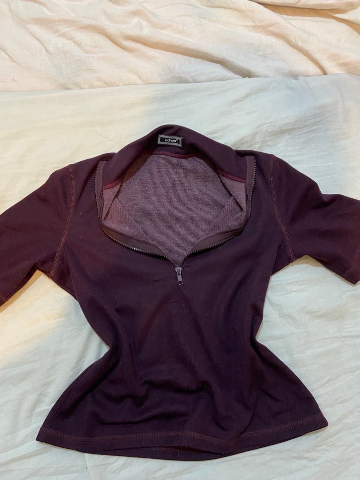 Bordo renkli, yüksek yakalı ve fermuarlı kazak Yumuşak ve sıcak dokulu kumaştan, uzun kollu ve normal midi boyda, günlük kullanıma uygun.