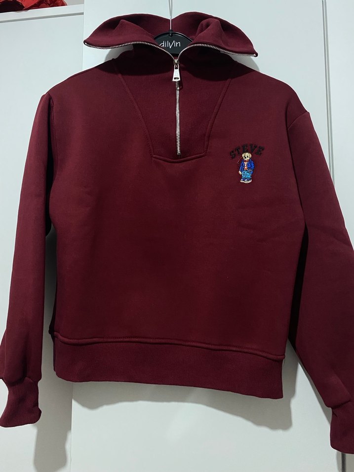 Bordo Fermuarlı Yüksek Yakalı Kadın Sweatshirt