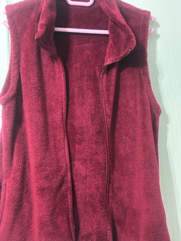 Bordo Fermuarlı Yumuşak Kadın Yelek peluş m beden