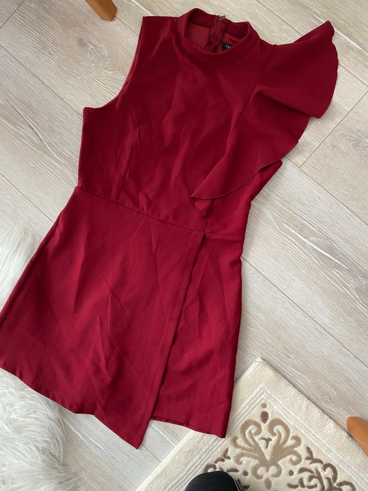 Bordo renktir cok temız üründür resımde tam bordo durmuyo arka detay dekolte mewcut omuzdn boy uzunluk 75 göğüs ölcüsü enden 40 tır. 36 bedendir kuması atlas kumas cok ıyı bır kumastır