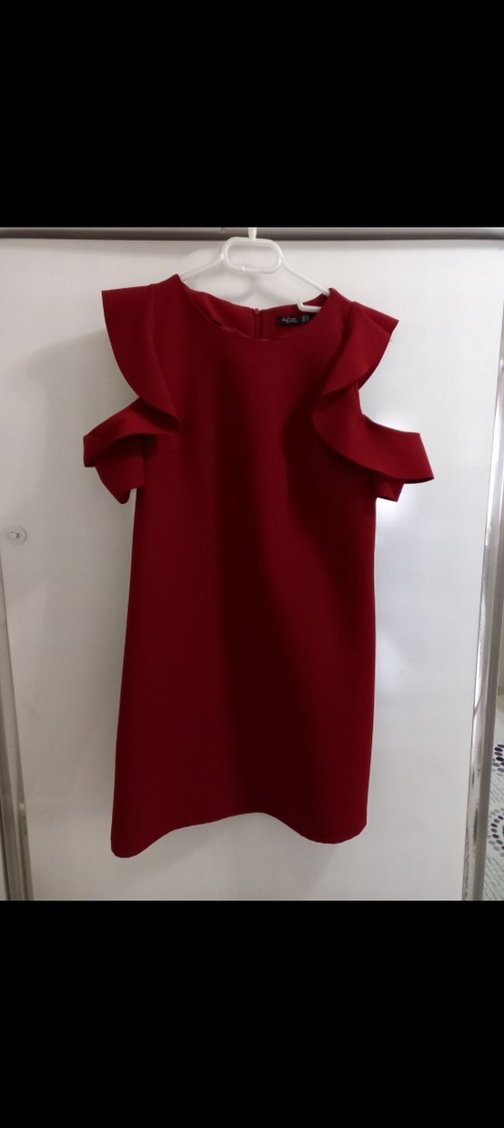 Bordo uzunlugu diz kapagına gelen şık kol detaylı bir elbısedır kilo aldım bır kez gıyebıldım yeni gibi