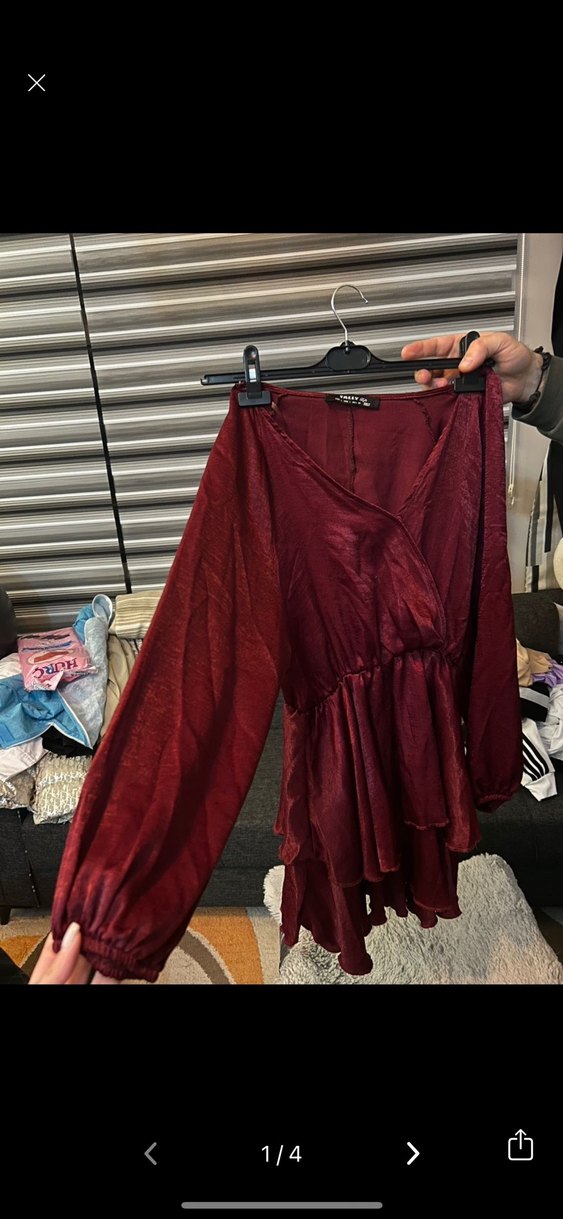 Bordo fırfırlı elbise