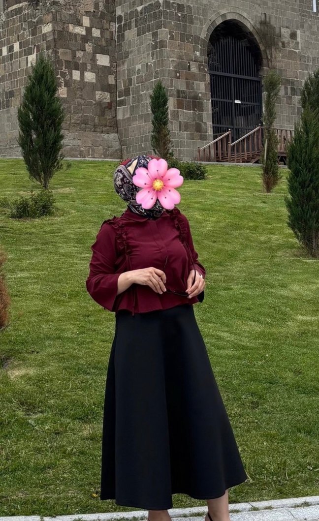 Bordo Fırfırlı Uzun Kollu Midi