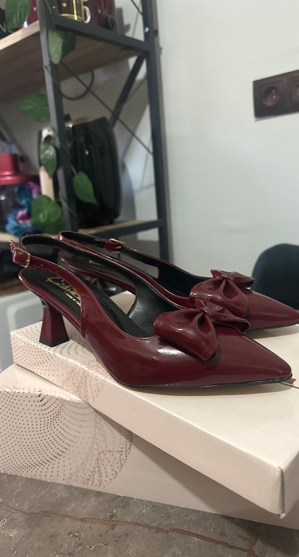 Bordo Fiyonklu Kadın Topuklu Ayakkabı