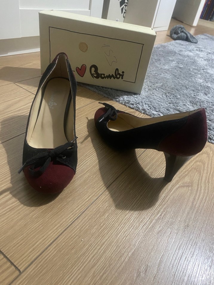 Bordo renkte, fiyonklu ve lastik görünümlü yüksek topuklu stiletto. Romantik buluşmalar için klasik şıklık sunar.
