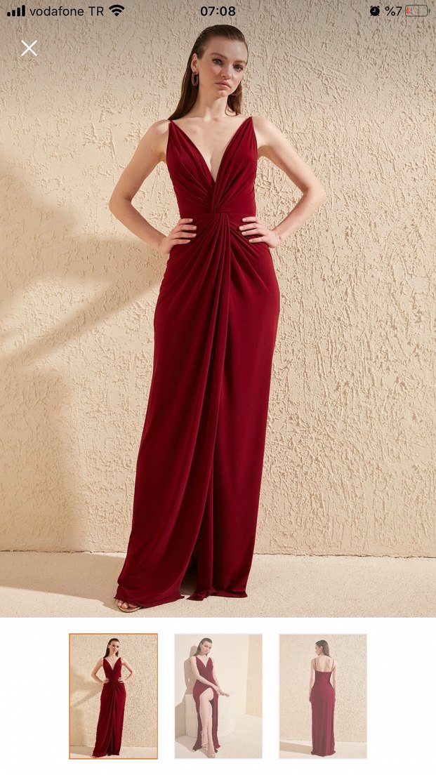 Trendyol milla abiye. Bir kere giyildi. Boyum 157 boyuma göre tadilat ettirdim. 8 cm topuklu ile giyildi.