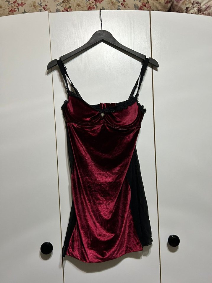 ürünün sıfır fiyatı 2000, 3000 TL arası.Bordo renkli, kadife dokulu, gotik tarzda, ince askılı ve midi boyda, vücuda oturan kadın gecelik.