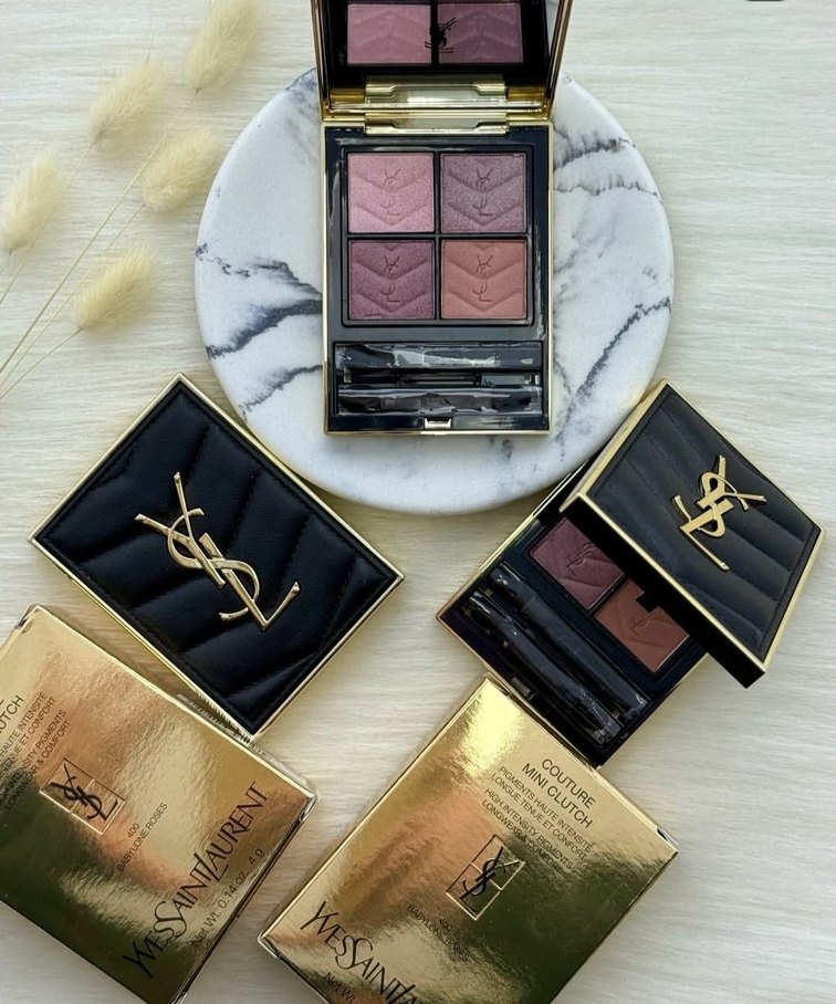 Yves Saint Laurent marka, bordo tonlarında 4 göz farı içeren palet. Mat ve ışıltılı dokular, ayna ve aplikatörler ile şık siyah-altın kutuda.