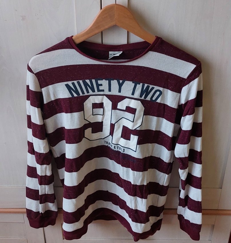 Uzun kollu, bisiklet yaka ve bol kesim olan bu erkek sweatshirtü, yumuşak pamuklu örgü kumaştan üretilmiştir. Bordo ve gri çizgili desene ve önünde "NINETY TWO 92" baskısına sahiptir.