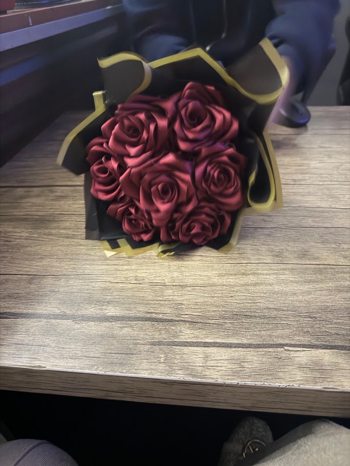 Özel günler için şık koyu bordo güllerden oluşan bir buket. El yapımı