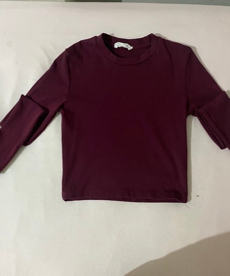 Bordo Hafif Crop Bluz. S beden. 2. fotoğrafta işaretlediğim kısımda küçücük bi gölge var belirsiz