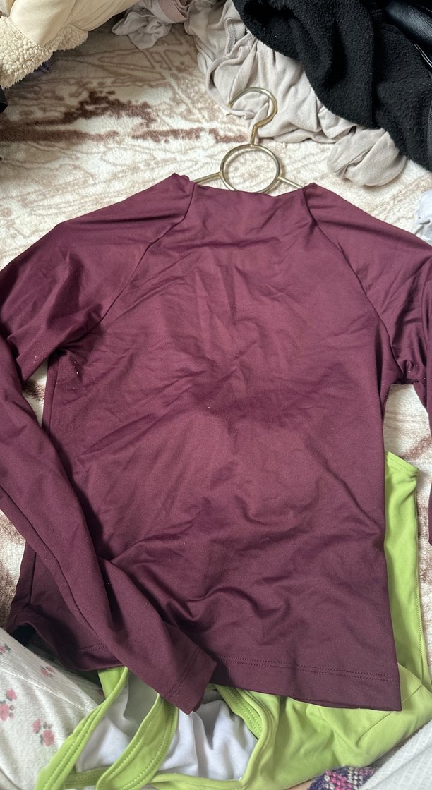 Bordo boğazlı, uzun kollu ve drapeli hamile tişörtü. Yumuşak sentetik kumaştan, günlük sokak stiline uygun rahat kesim.