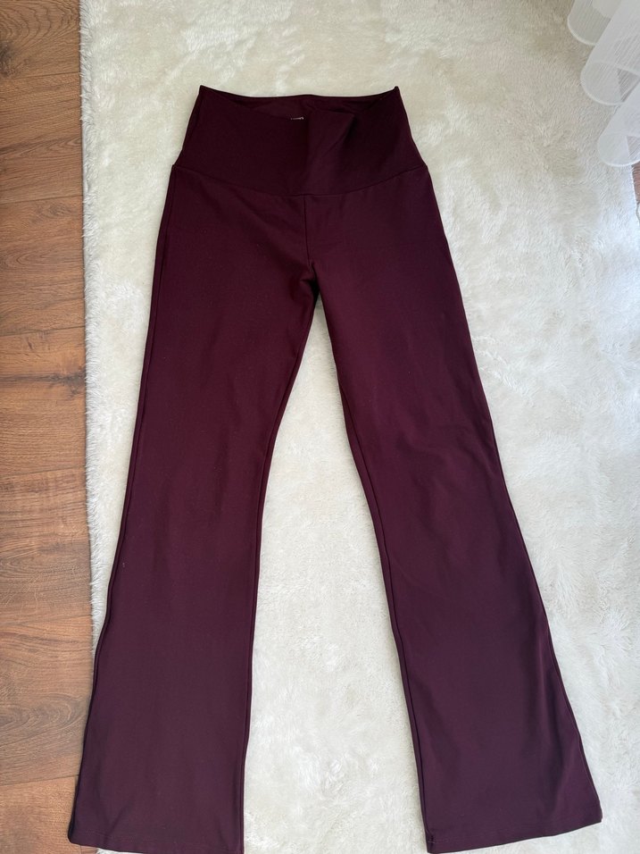 Bordo renkte, sentetik kumaştan, normal midi boyda, fitted kesim hamile spor pantolon, günlük kullanıma uygun, zahmetsiz şıklık sunar.