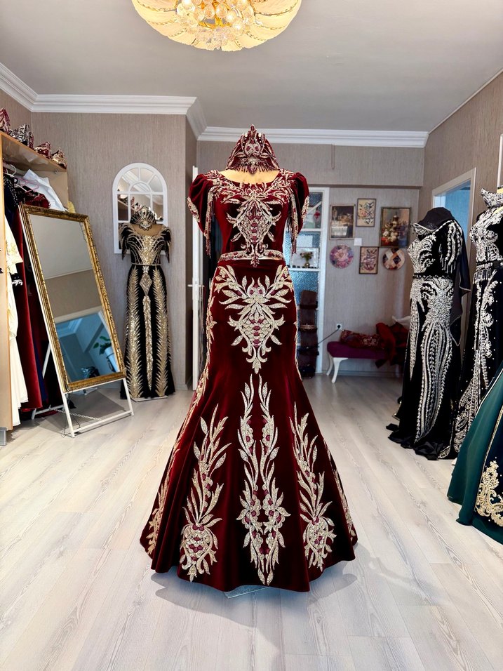 Bordo hint tarzı balık etekli kına kıyafeti