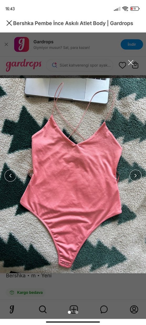 Hiç giyilmedi. Somon renkli, ince askılı ve midi boyda, vücuda oturan kadın mayosu, günlük kullanım için rahat ve şık bir görünüm sunar. #gardrops #dolap #kıyafet #pantolon #mayo #çıtçıtlı #bot #elbise #dolap #kıyafet #bluz