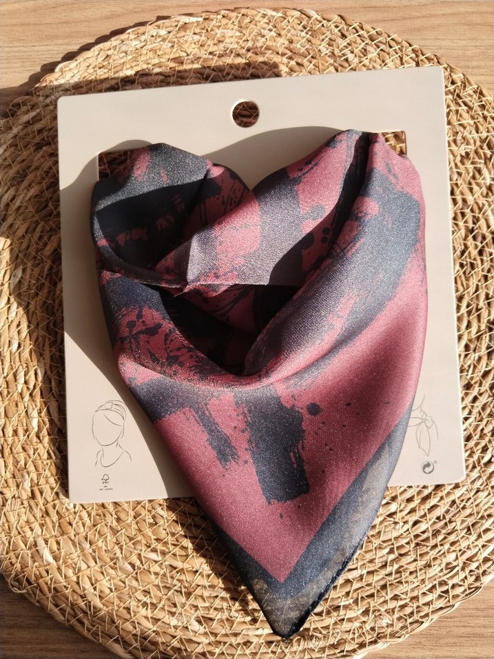 Bordo renkli, ipek görünümlü, bohem tarzda drapeli kadın fular. Parisli trendsetterlar için avant-garde bir seçenek.