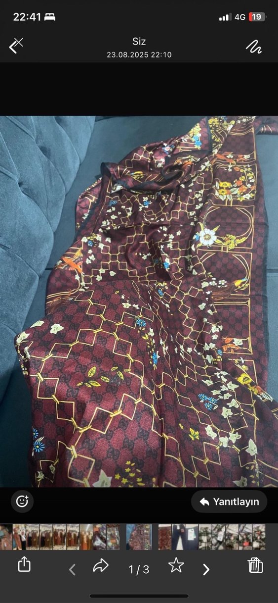 Bordo renkte, ipek görünümlü ve drapeli kadın şal, çiçek ve geometrik desenlerle bohem tarzını yansıtıyor.