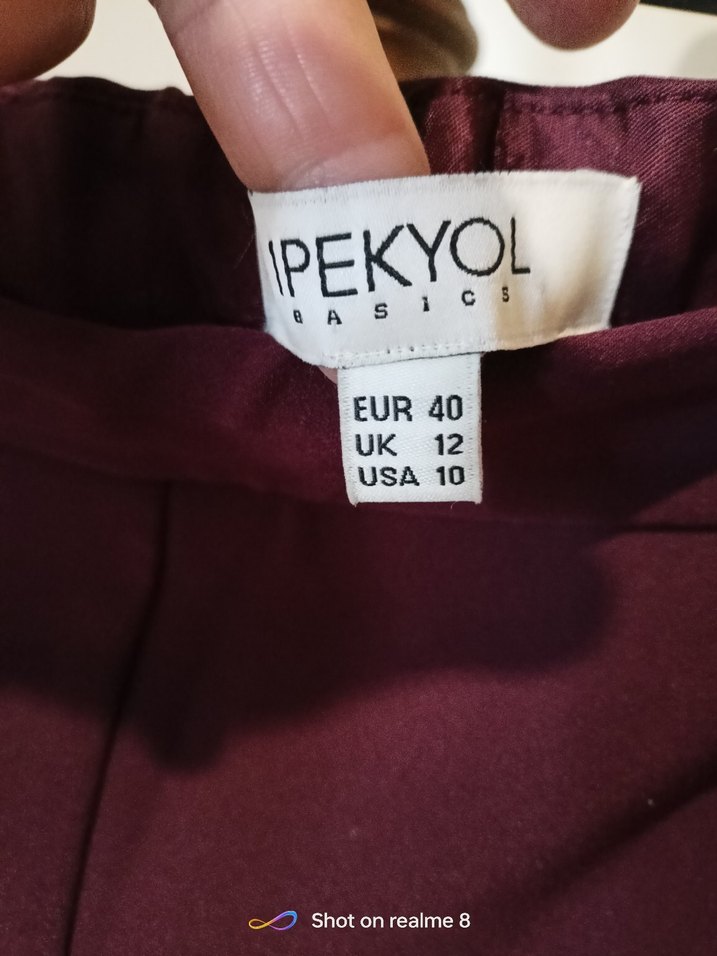 Bordo renkte, İpekyol pantalon. Koyu renk ve rock punk stilinde. Beden 40 Akbatı AVM İpekyol yeni sezon cok güzel tertemiz birkere kullanildi