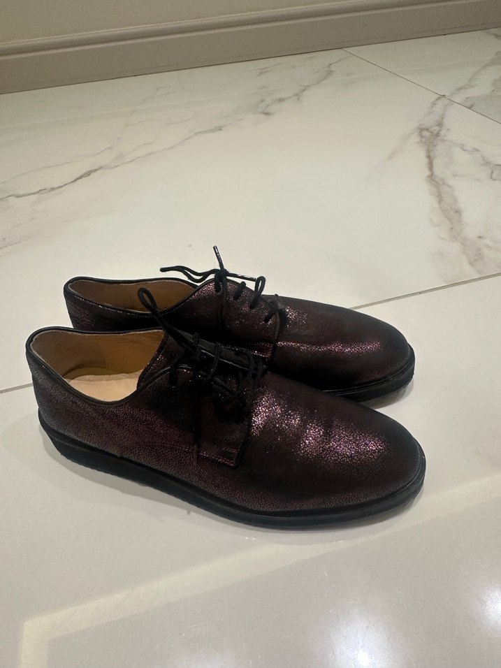 Bordo deri kadın klasik ayakkabı, şık tasarıma sahiptir. Hediye gelmişti bana maalesef ayağımı sıktığı için yalnız 1 kere giyildi ve bir daha giyemedim. Ürün onun dışında hiç giyilmediği için içindeki derilerde dahi yıpranması yoktur