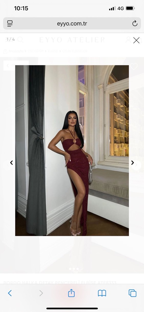 Bu bordo ışıltılı uzun elbise, straplez ve ince askılı olup, yüksek yırtmaç detayına sahiptir. Kaliteli dokusu ile dikkat çeker. Romantik akşamlar için uygundur. Bir kez kullanıldı,yeni gibi✨