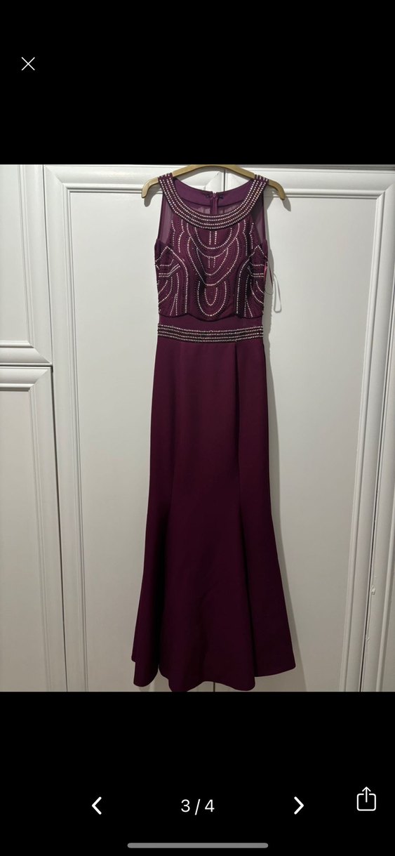 Bordo renkli, kolsuz ve balık kesim bu abiye elbise, boncuk işlemeleri ve tekne yaka detayıyla dikkat çekiyor. ✨