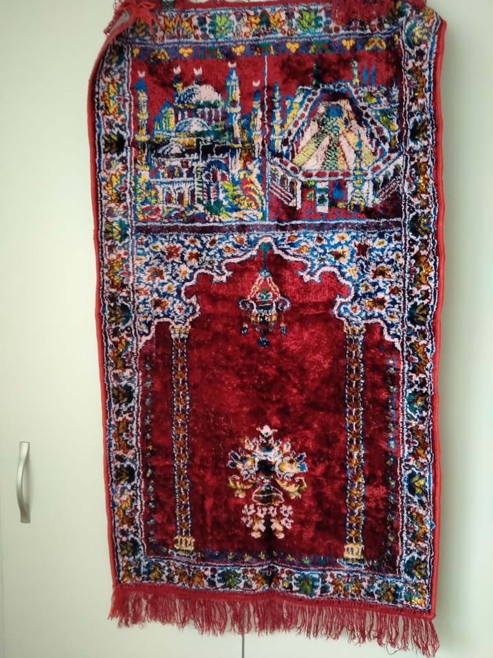 Bordo renginde, renkli işlemeli desenlere sahip geleneksel halı. Detaylı bordürleri ve püsküllü kenarlarıyla dikkat çeker. #vintage #seccade ipek kadife 58×100 cm diğer ilanlarıma da bir göz atın isterseniz almadan önce iletişime geçerseniz sevinirim