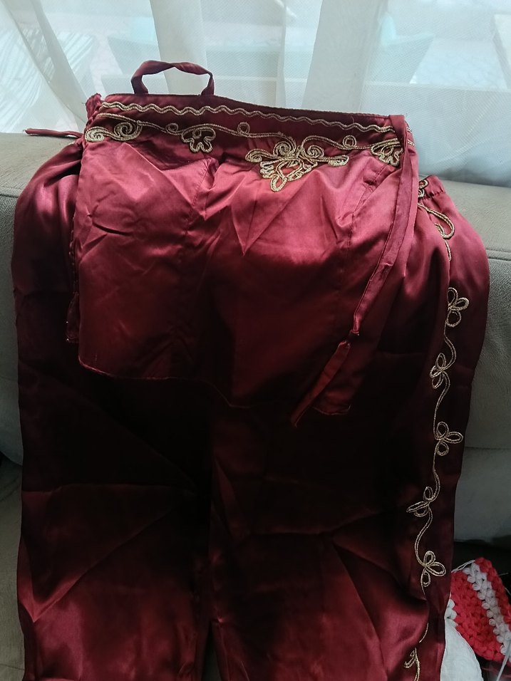 Bordo renkli, işlemeli, drapeli ve straplez yaka iki parçaelbise, klasik ve vintage tarzıyla düğünlere uygundur.