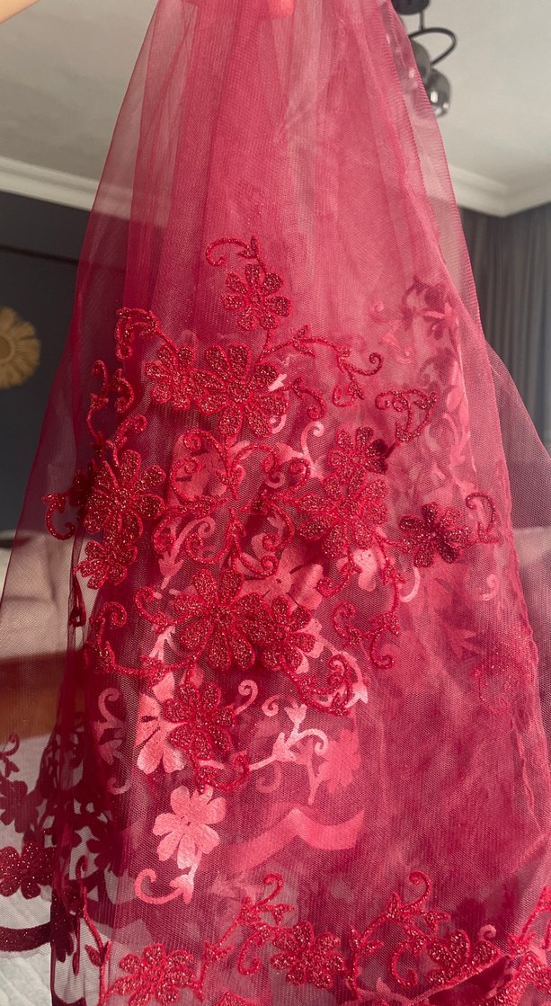 Bordo İşlemeli Kına duvağı