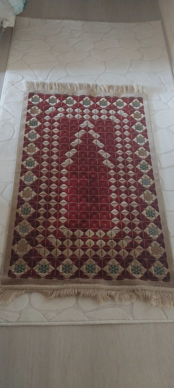 Bordo renginde işlemeli, klasik tarzda geometrik desenlere sahip ve püsküllü kenarları bulunan halı. Detaylı dikişlerle dokusu zenginleştirilmiştir. 2 dfa qncq kullanılmıştır yıkanmış temizdir