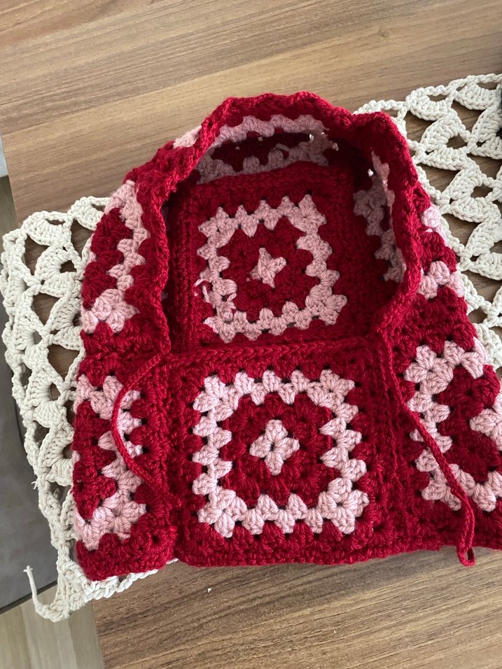 İşlemeli desenli, açık bordo renkte, yumuşak kumaştan yapılmış motifli bere . Bağcıklı kapanışa sahiptir.