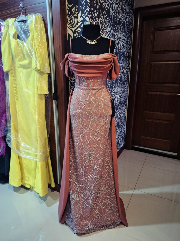 Bordo renkli, straplez ve drapeli kollara sahip uzun abiye elbise. İşlemeli desenleri ve klasik modern tarzıyla düğünler için uygundur. ✨38.40.42.44 mevcuttur.tekliflere donus yapilir