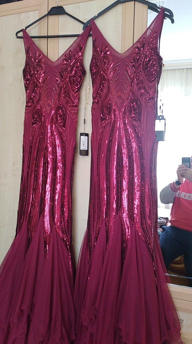 Hiç kullanilmadi sıfır mağaza ürünü Bordo renkli, işlemeli ve parlak yüzeyli abiye elbise. Straplez, kolsuz ve vücuda oturan kesimiyle modern klasik tarzda, gösterişli davetler için uygun.