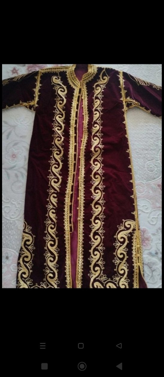 Bordo İşlemeli Uzun Kadın Bindallı Elbise
