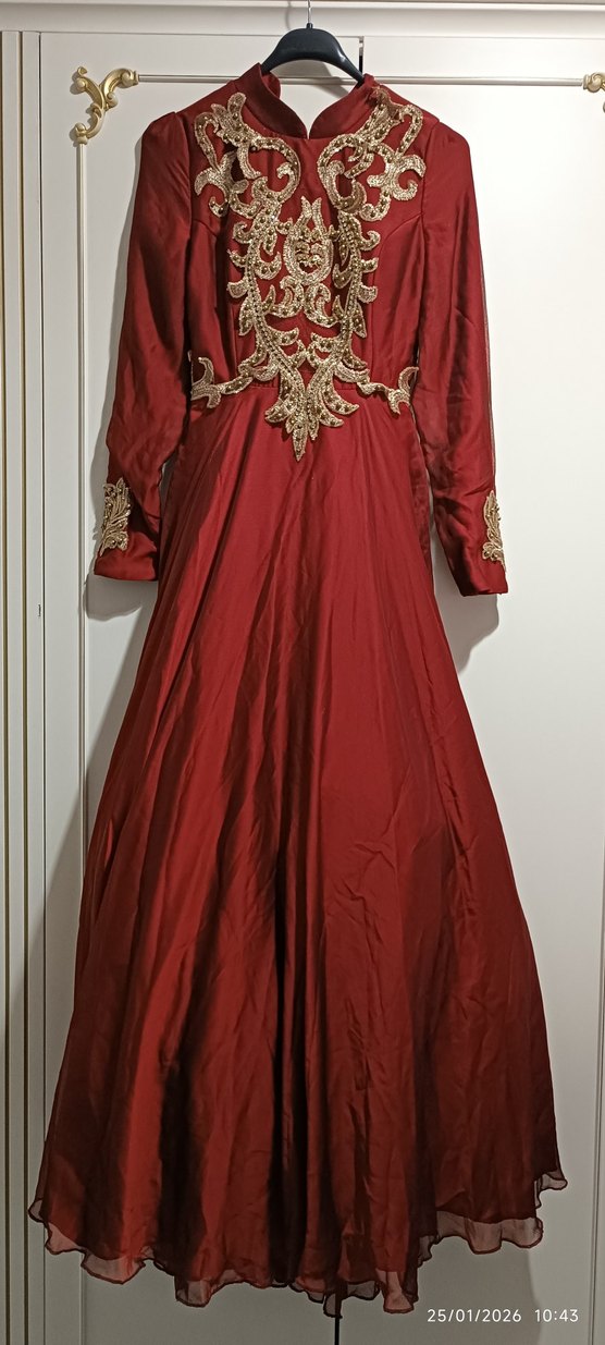 Bordo İşlemeli Uzun Kollu Abiye Elbise 1 kere giyildi