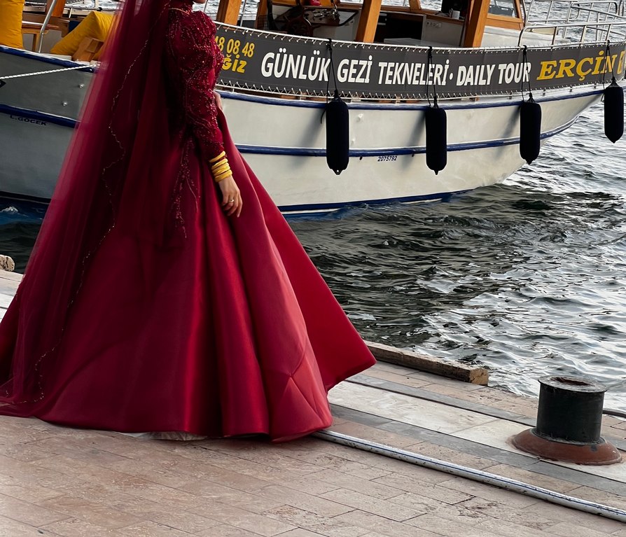 Bordo renkli, işlemeli ve drapeli uzun kollu kadın abiye elbise. Tekne yaka ve oturan kesimiyle düğünler için şık ve gösterişli bir seçenek. Kınamda 1 kez giydim ürün 38 beden tertemiz pazarlıkta yardımcı olurum .kılıfında duruyor ✨