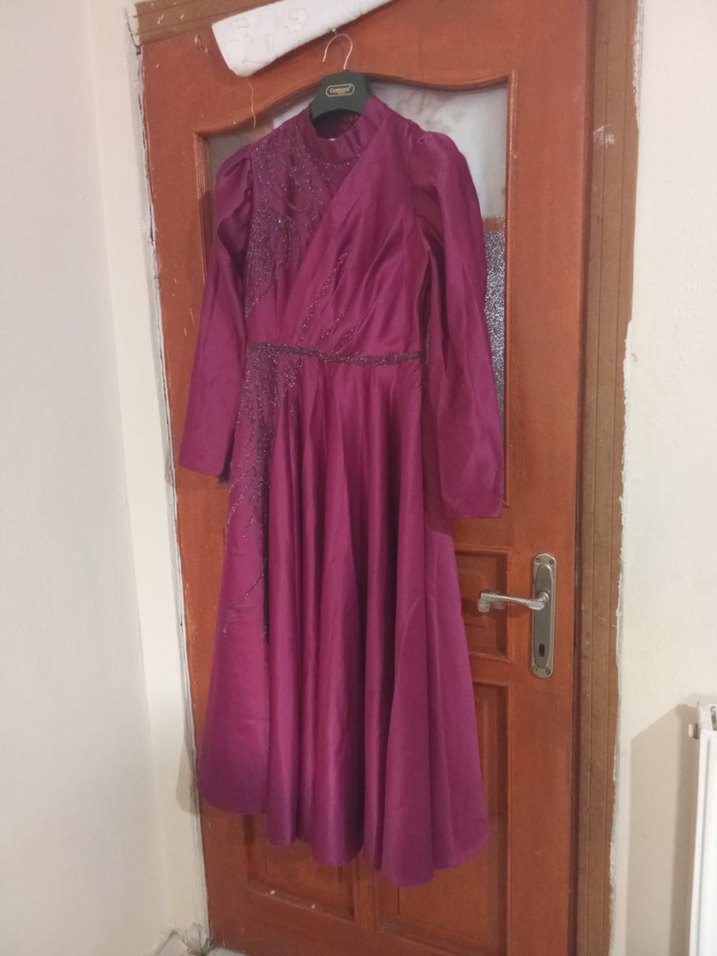 Bordo renkli, yüksek yakalı ve uzun kollu bu elbise işlemeli detaylara ve drapeli tasarıma sahip, klasik ve şık bir duruş sunar. ikisi 1300 sadece bir er kere kullanıl dı