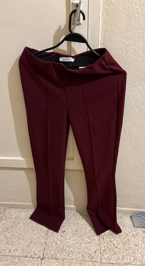 Bordo , regular fit, drapeli kadın kumaş pantolon. Ofis ve günlük sokak stiline uygun, yumuşak sentetik kumaştan yapılmıştır.