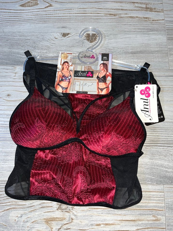 Bordo kadife bralet takım dolgusuz sütyen çıkışlıdır hepsinin etiketleri üzerindedir bedenleri fotoğraflarda mevcuttur