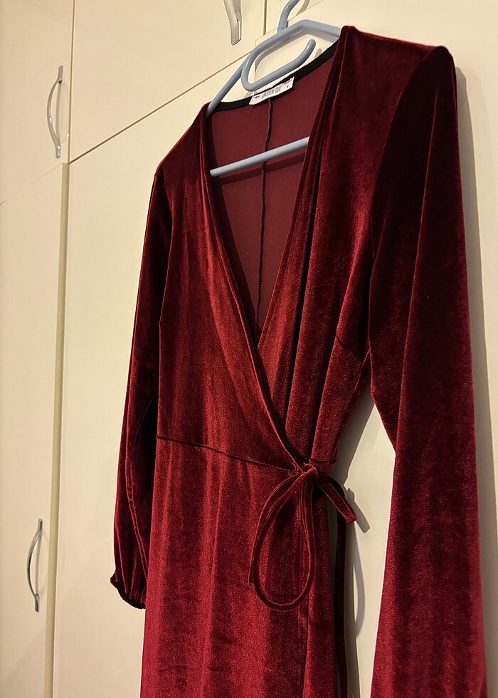 Bordo kadife elbise bana bol bir kez giymiştim ^lastan. uzunluk 85 cm *Marka öne çıkması için