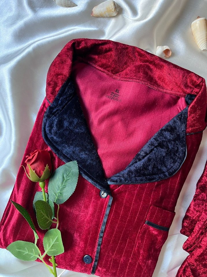 Bordo Kadife Kadın Pijama