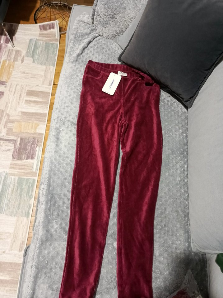 Yumuşak kadife kumaştan yapılmış, bordo renkli, vücuda oturan kız taytı. Desensiz ve normcore tarzıyla rahat ve şık bir görünüm sunar.