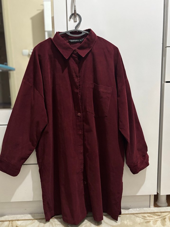 Bordo Kadife Midi Boy Gömlek Tunik