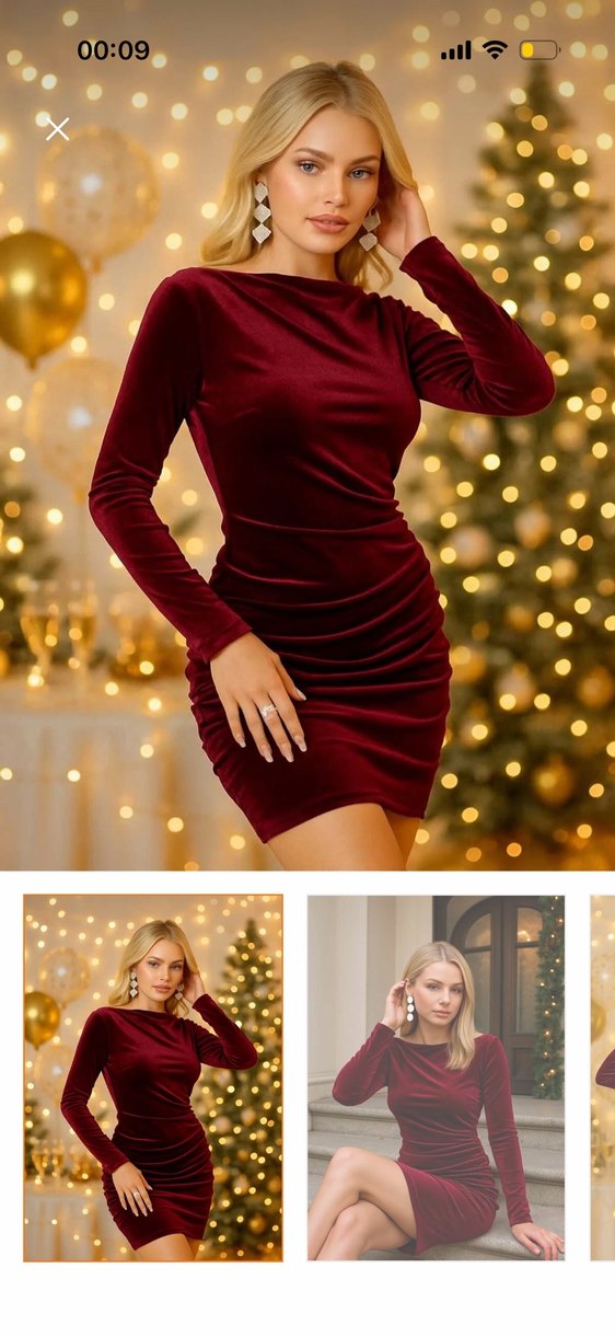 Bordo kadife kumaştan, uzun kollu ve drapeli tasarıma sahip, vücuda oturan midi elbise. Parlak ve desensiz görünümüyle parti için uygundur. Trendyol’dan aldım. Small beden. 1 kez giyildi.